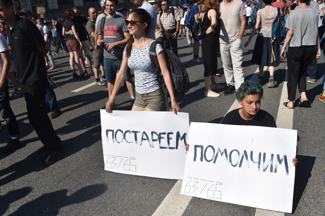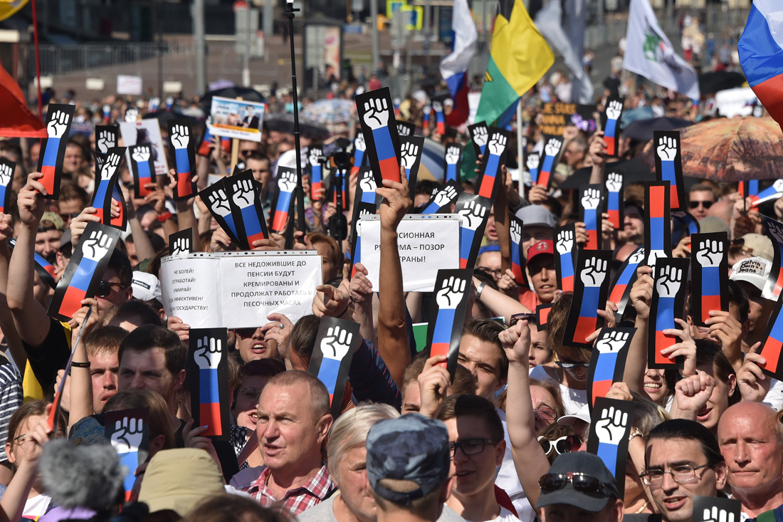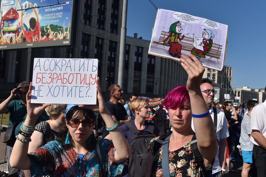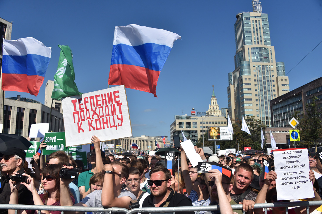 Люди скандировали лозунги против повышения пенсионного возраста, за отставку правительства и сменяемость власти