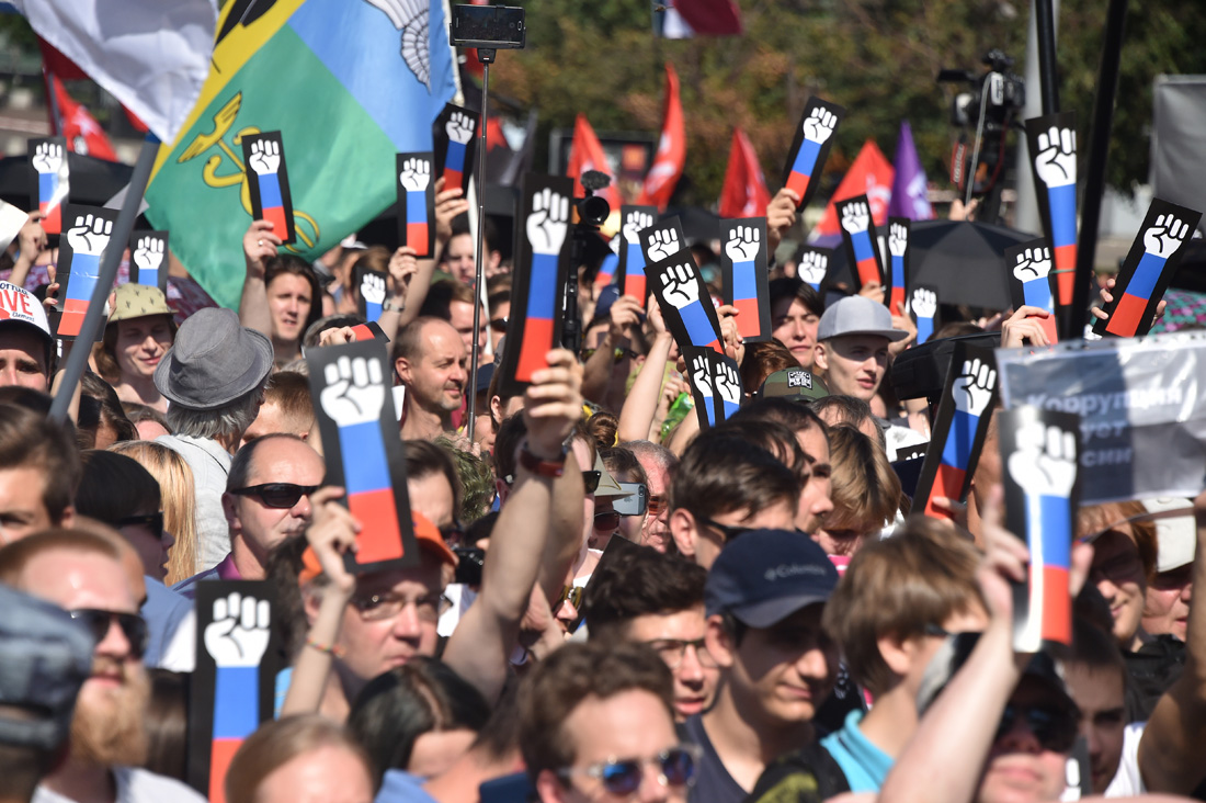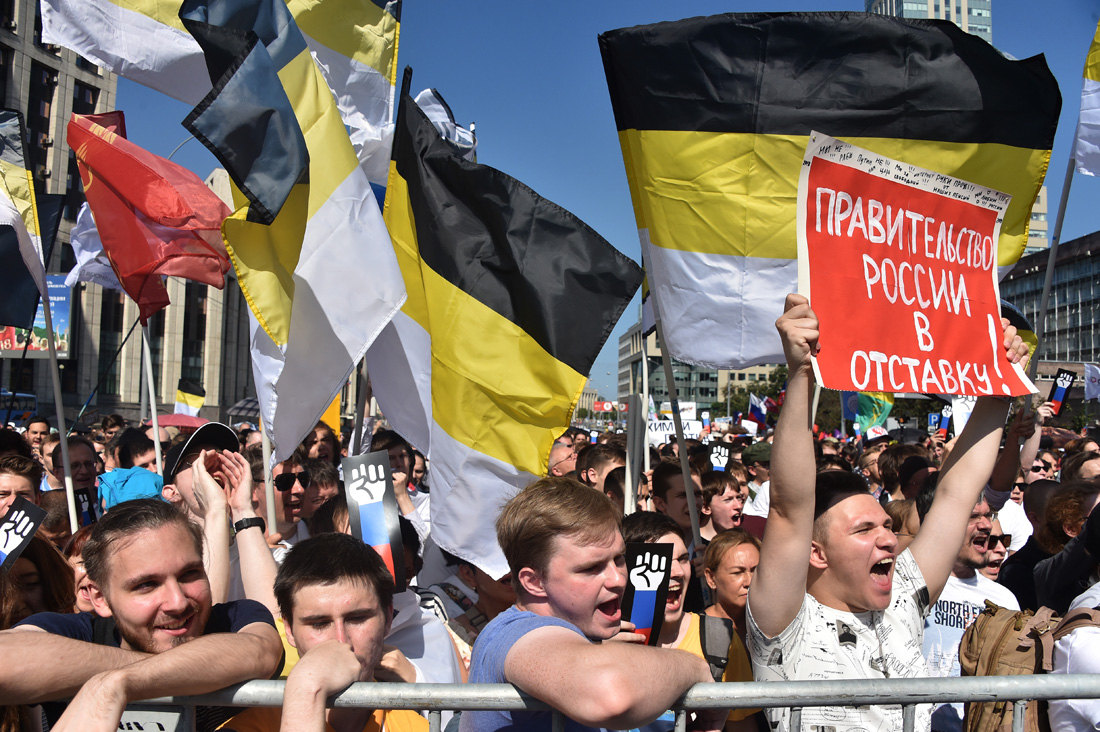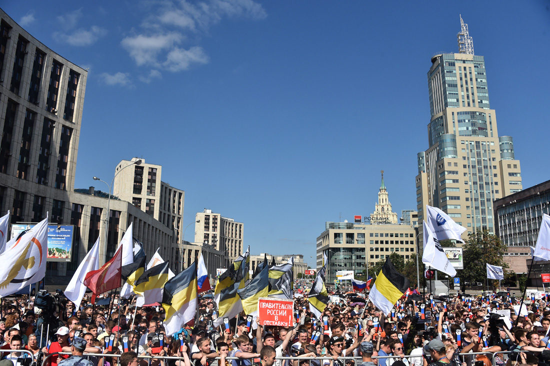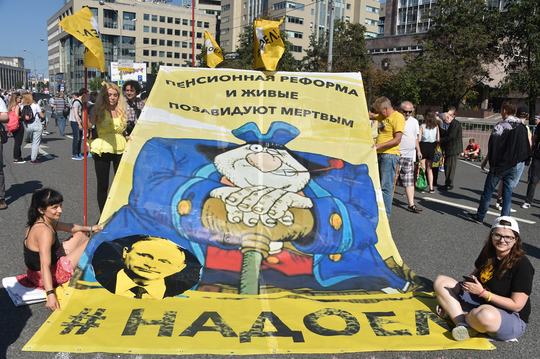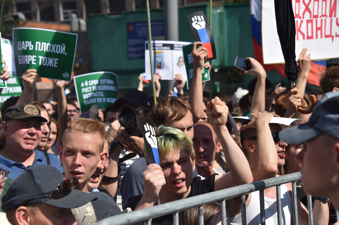 Люди скандировали лозунги против повышения пенсионного возраста, за отставку правительства и сменяемость власти