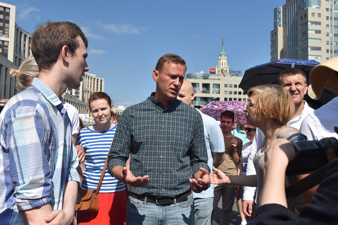 «На митинге против пенсионного грабежа. Тут отлично. Сегодня не выступаю — ротация выступающих важная вещь. Стою вместе со всеми, как сегодня и должен делать каждый ответственный гражданин», — написал Навальный в своем твиттере.